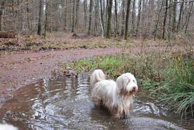 Gruppe von ihrem Spaziergang zurückkam. Hier wäre eine Hundewaschstraße willkommen gewesen. Aber einen Beardiebesitzer kann so schnell nichts